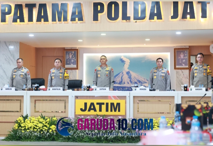 Surabaya, Garuda10.com – Polda Jawa Timur kembali menggelar Analisa dan evaluasi (Anev) Sitkamtibmas 2024 dan hasil Operasi Lilin Semeru 2024 – 2025 di Rupatama Mapolda Jatim, Jumat (24/1/2025).