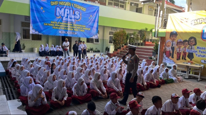 Pada kesempatan ini, 230 murid baru dari SMP Negeri 1 Trawas menerima informasi dari Sat Lantas Polres Mojokerto Polda Jatim mengenai aspek keselamatan berkendara di jalan dalam rangka kegiatan Masa Pengenalan Lingkungan Sekolah (MPLS) yang dilaksanakan pada Selasa (15/7/2025).