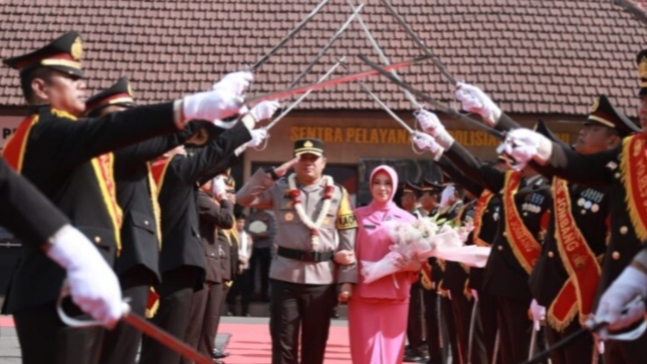 Tradisi ini menjadi simbol penghormatan sekaligus penyambutan hangat dari jajaran Polres Jombang kepada pemimpin baru mereka.