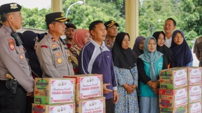 Polisi menyalurkan bantuan sembako ke korban angin kencang (Foto: Dok. Polres Jombang)
