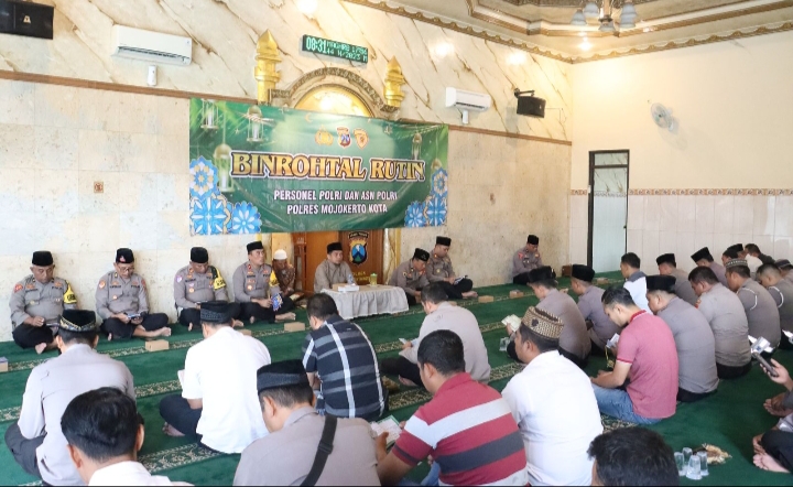 Binrohtal yang dilaksanakan di Masjid Darul Muttaqin Polres Mojokerto Kota ini diawali dengan pembacaan ayat suci Al-Qur’an, dilanjutkan dengan tausiyah keagamaan yang disampaikan oleh Ustad As’at Umar. Lc.