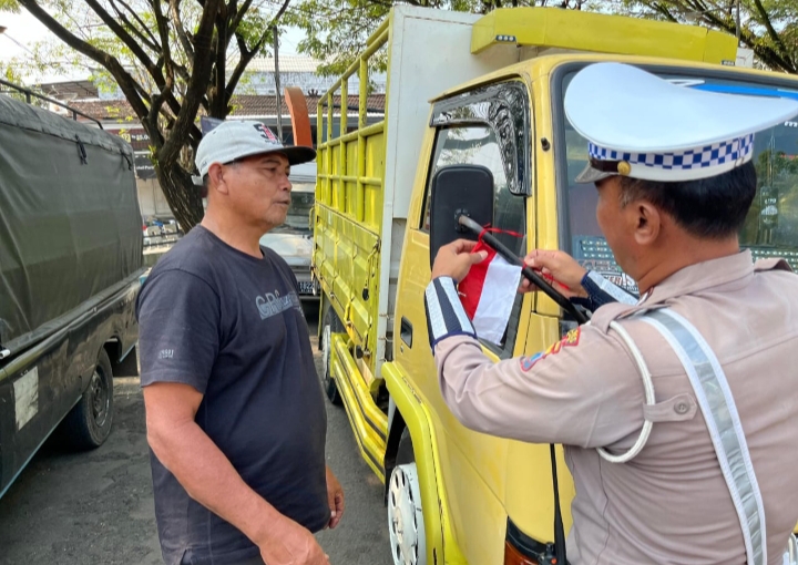 Selain membagikan bendera, petugas juga memberikan imbauan mengenai ketertiban lalu lintas serta ajakan untuk merayakan kemerdekaan dengan cara yang damai dan bermakna.