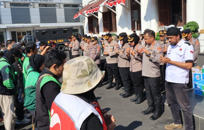Surabaya, Garuda10.com – Polrestabes Surabaya di bawah naungan Polda Jatim bersama sekitar 500 pengemudi Ojek Online (Ojol) melakukan doa bersama di area Lapangan A Polrestabes Surabaya, Senin (1/9/2025).