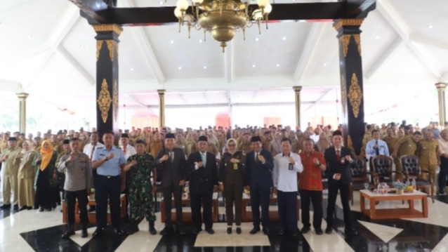 Rapat Koordinasi Launching SPPT PBB-P2 Tahun 2025, serta penyerahan DHKP (Daftar Himpunan Ketetapan Pajak dan Peta Blok PBB P2 tersebut dihadiri Perwakilan Forkopimda, Sekdakab Jombang, Kepala DPRD Kabupaten Jombang, Staf Ahli, Asisten, Kepala OPD terkait, Pimpinan Bank Jatim, Kepala Kantor Pertanahan Kabupaten Jombang, Ikatan Pejabat Pembuat Akta Tanah (IPPAT), Camat, Kepala Desa/Lurah beserta Sekretaris Desa. (Red)